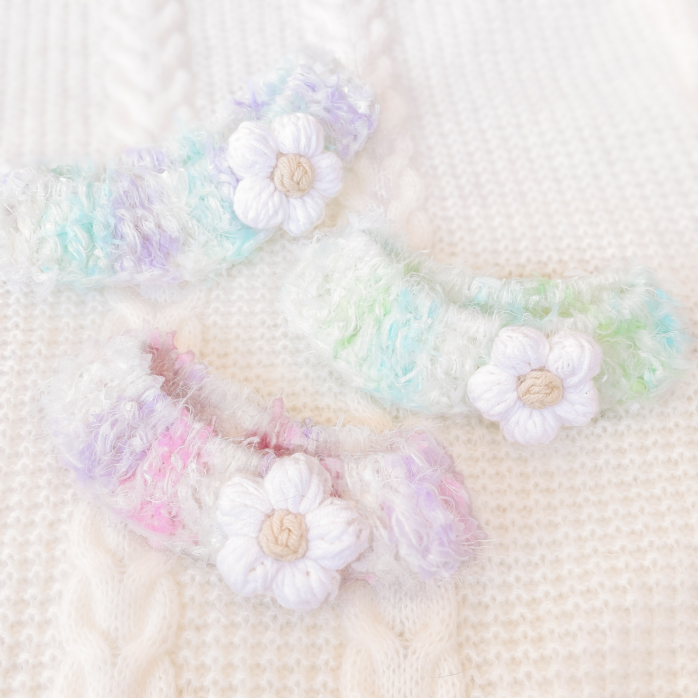 🍬 馬卡龍美學|嚴選如雪酪般的繽紛混色紗線,職人手工鉤織出具有立體波浪感的「泡芙結構」,賦予頸間靈動的層次張力。
